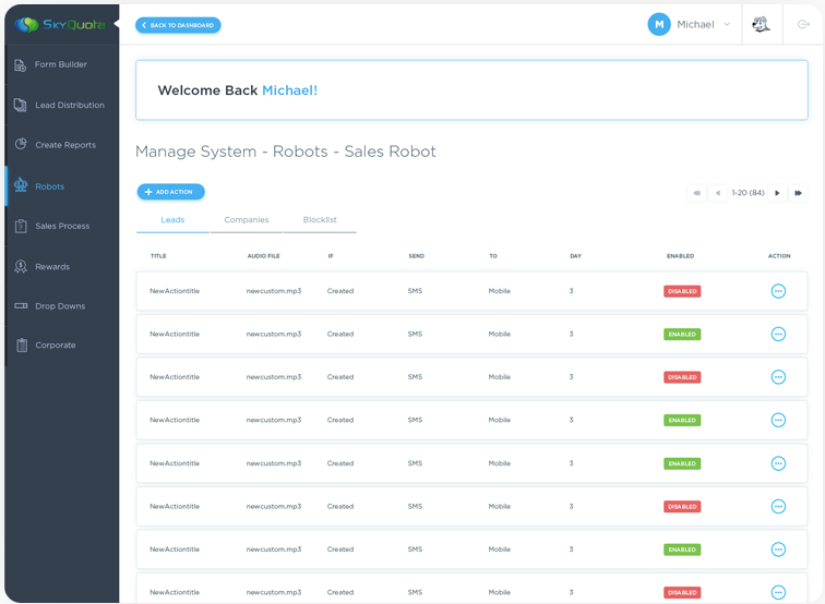 Schedule automated voice calls and provide customers a valuable experience. Our Sales Robot lets you play your own voice during scheduled automated calls. Build personalized customer journeys and schedule SMS messages along the way. Our Sales Robot will send alerts and notifications right on time, maximizing customer engagements. Paired with our robots in marketing, it is extremely easy to convert leads with minimal effort required with SkyQuota. SkyQuota’s Sales Robot and Marketing Robot are some of our best and most powerful features. Check our blogs for more articles on marketing robots and sales robots and how they work!